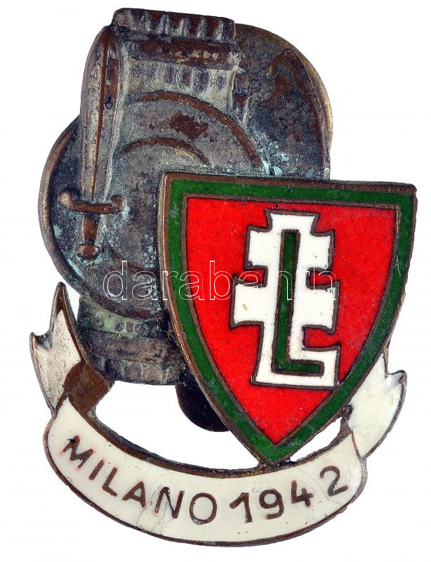Hungary 1942. enamelled Br Levente badge "MILANO 1942" for the sport event organized by the Italian "Gioventu Italiana del Littorio" C:XF