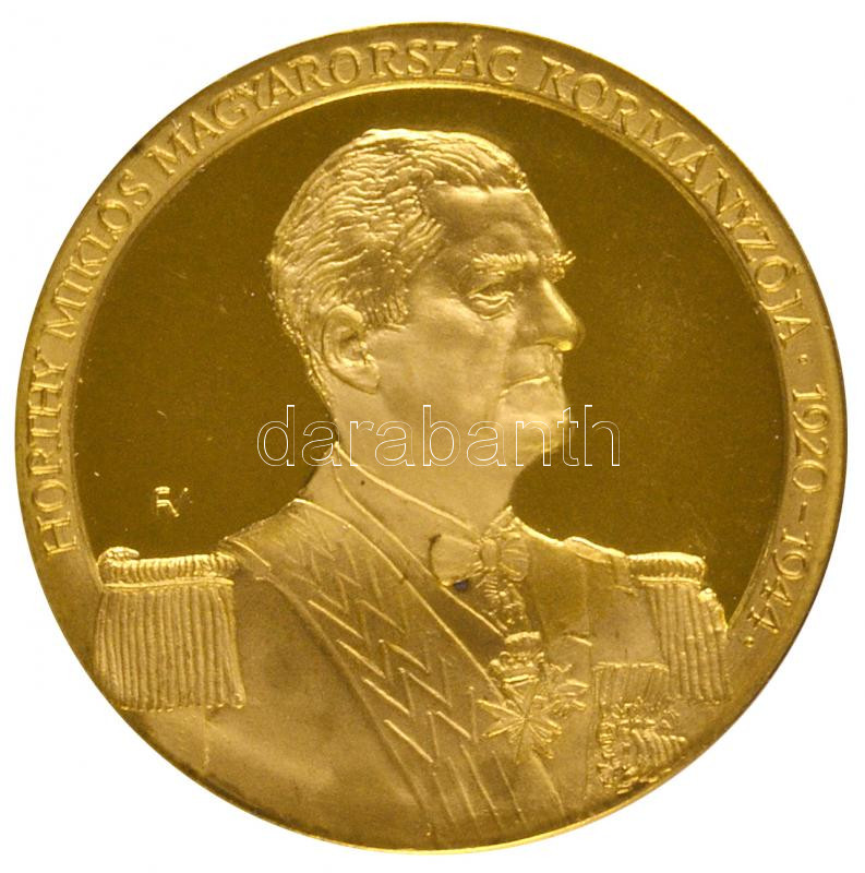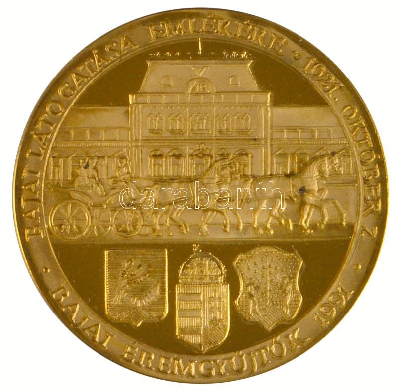 Beschreibung: Fűz Veronika (1951-) 1991. "Bajai Éremgyűjtők - Horthy Miklós Bajai Látogatása Emlékére" aranyozott Br emlékérem (42,5mm) T:PP