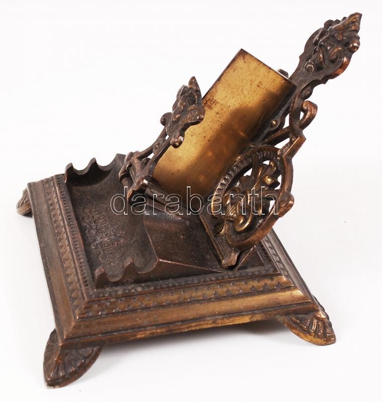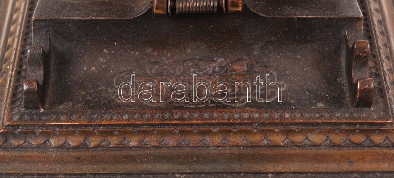 Beschreibung: Antik irattartó, gazdagon díszített, réz, jelzett (D.R.P.), 14×11 cm, m:11 cm
