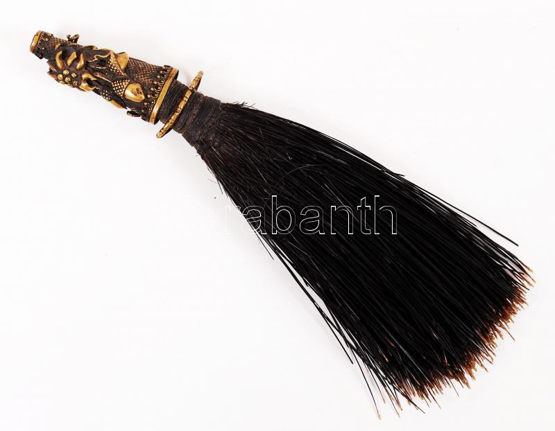 Beschreibung: Antik vádászkalap dísz, vaddisznó sörény réz, h:15 cm