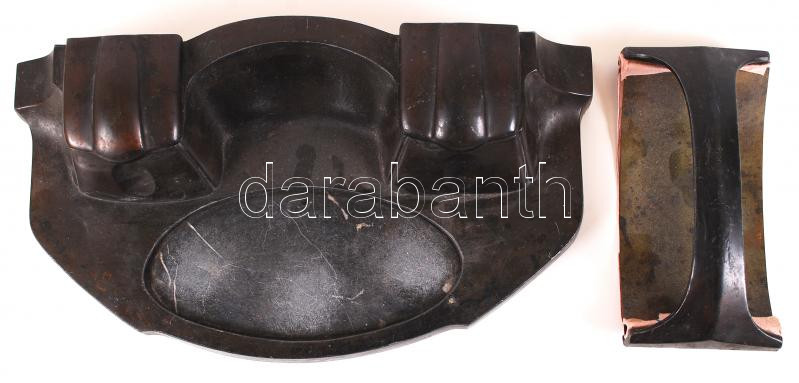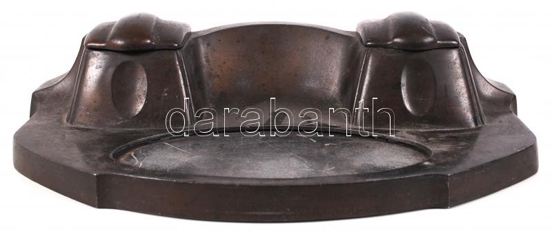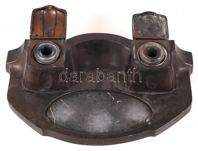 cca 1930 Art deco, fém és márvány íróasztali készlet eredeti üvegbetétekkel (az egyik üveg törött) /