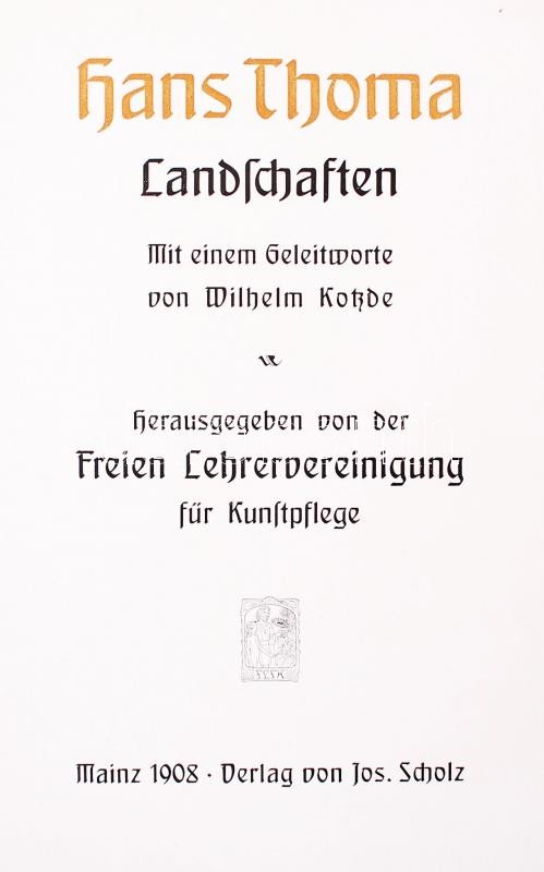 Hans Thoma: Landschaften. Mainz, 1908. 35p. https://www.darabanth.com/de/197-Fernauktion/197.0/Andere-Sammelgebiete/Bucher-Andere-Sprachen~600037/Hans-Thoma-Landschaften-Mainz-1908-35p~II757806