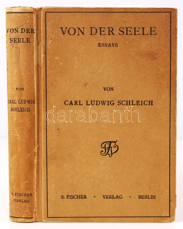 Schleich, Carl Ludwig: Von der Seele. Essays. Berlin, 1919, S. Fischer... https://www.darabanth.com/de/197-Fernauktion/197.0/Andere-Sammelgebiete/Bucher-Andere-Sprachen~600037/Schleich-Carl-Ludwig-Von-der-Seele-Essays-Berlin-1919-S-Fischer-Kiadoi-kemenykotesben-j~II760674
