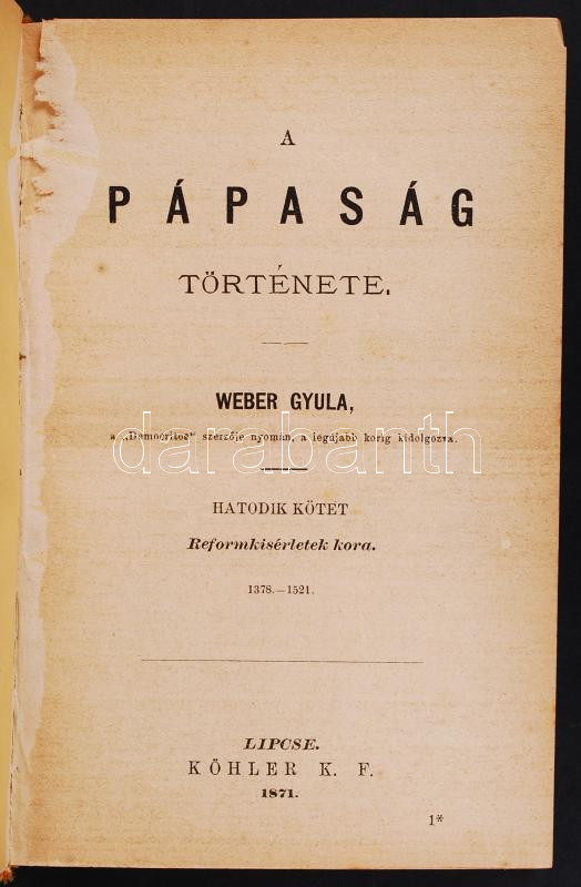 Weber Gyula: A pápaság története VI.-VIII. kötet egybekötve Lipcse, 18... https://www.darabanth.com/de/197-Fernauktion/197.0/Andere-Sammelgebiete/Bucher-Geschichte~600028/Weber-Gyula-A-papasag-tortenete-VI-VIII-kotet-egybekotve-Lipcse-1871-Kohler-K-F-Keso~II746061
