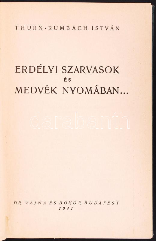 Thurn-Rumbach István: Erdélyi szarvasok és medvék nyomában... Bp. 1941... https://www.darabanth.com/de/197-Fernauktion/197.0/Andere-Sammelgebiete/Bucher-Jagd~600036/Thurn-Rumbach-Istvan-Erdelyi-szarvasok-es-medvek-nyomaban-Bp-1941-Vajna-es-Bokor-225p-~II764510