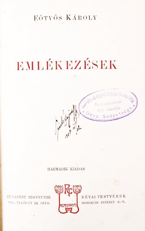 Eötvös Károly: Emlékezések. Budapest 1908. Révai Testvérek. https://www.darabanth.com/de/197-Fernauktion/197.0/Andere-Sammelgebiete/Bucher-Sonstige-Raritaten~600040/Eotvos-Karoly-Emlekezesek-Budapest-1908-Revai-Testverek~II757703