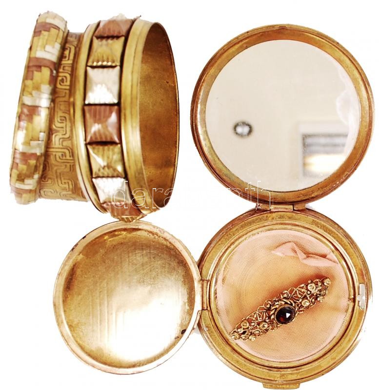 3 db réz karkötő, 1 db réz púdertató és egy csiszolt üveges réz kitüző https://www.darabanth.com/de/197-Fernauktion/197.0/Andere-Sammelgebiete/Flohmarkt~600013/3-db-rez-karkoto-1-db-rez-pudertato-es-egy-csiszolt-uveges-rez-kituzo~II762517