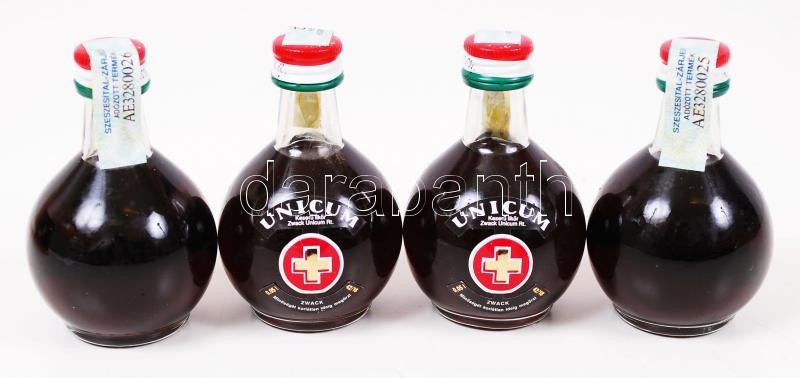 Beschreibung: 4 db Zwack Unicum 0,05 l, fém dobozban