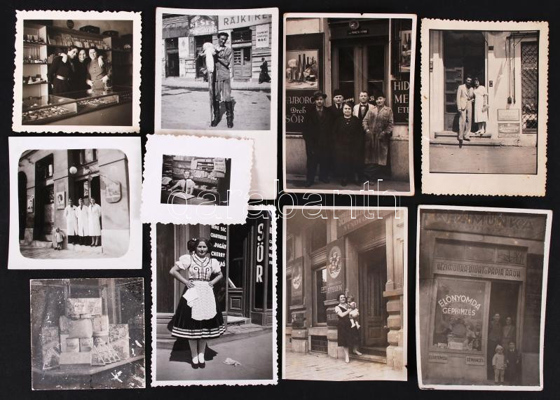 Beschreibung: cca 1936 Üzleteket és dolgozóikat ábrázoló kisméretű fotók, 10 db.
