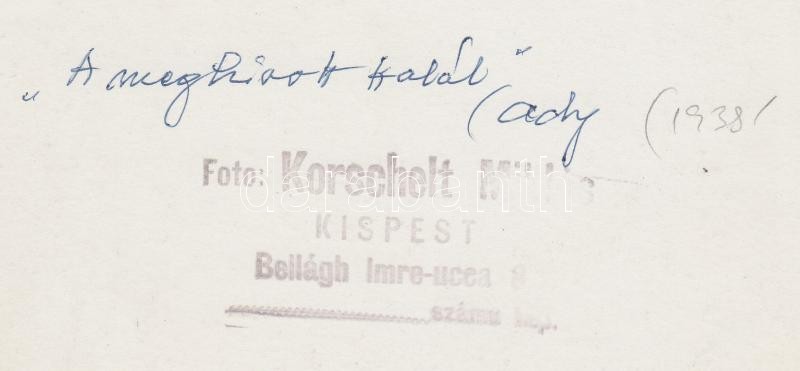 Beschreibung: 1938 Korschelt Miklós: „A meghívott halál” (Ady), vintage fotó, pecséttel jelezve, 22x16 cm