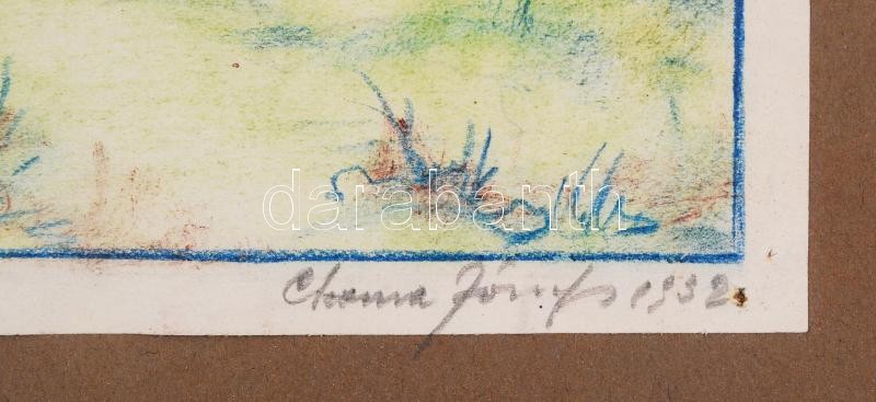 Beschreibung: Choma József (1901-1969): Mátrafüred. Vegyes technika, papír, jelzett, üvegezett keretben 22×28 cm