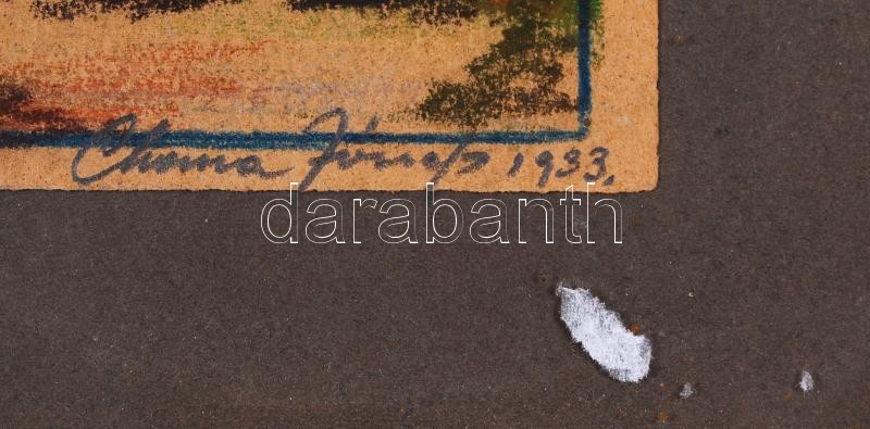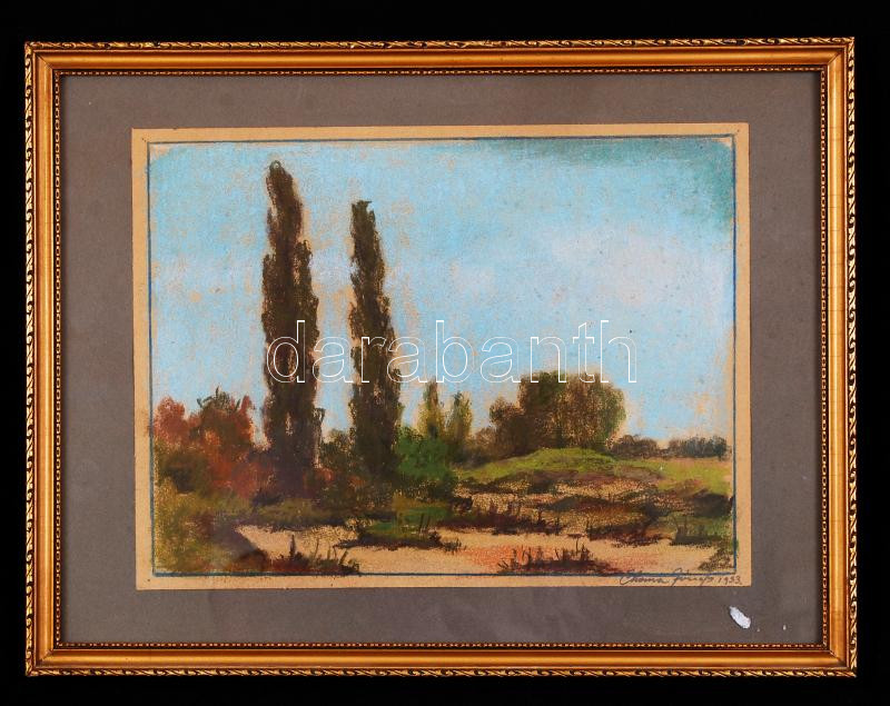 Beschreibung: Choma József (1901-1969): Tájkép. Pasztell, papír, jelzett, üvegezett keretben 22×28 cm