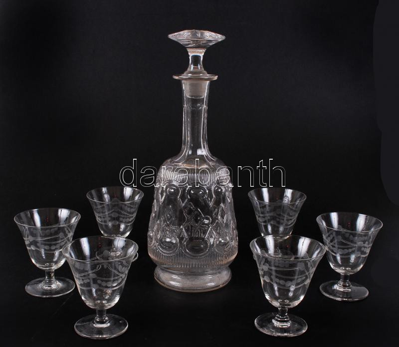 Beschreibung: XX. sz. eleje: Metszett üveg likőröskészlet / cca 1900 Liqueor set of 6