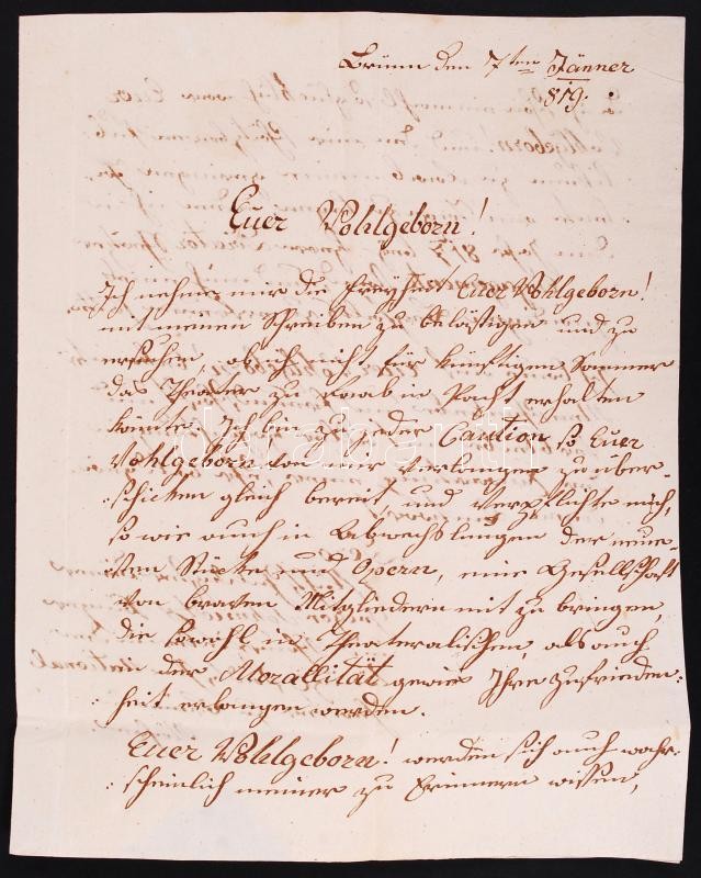 1819 Brünn, A városi főkapitánynak címzett levél Győrbe viaszpecséttel... https://www.darabanth.com/de/197-Fernauktion/197.0/Andere-Sammelgebiete/Historische-Dokumenten-Handschriften~600017/1819-Brunn-A-varosi-fokapitanynak-cimzett-level-Gyorbe-viaszpecsettel-3Cbr3E-3Cbr3E1819-Brno~II762377