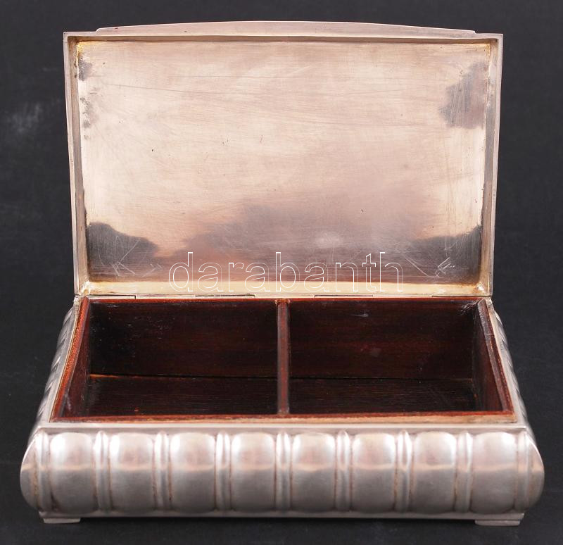 1937-1965 800-as tisztaságú, ezüst (Ag) dohányos dobozka, fa betéttel,... https://www.darabanth.com/de/197-Fernauktion/197.0/Andere-Sammelgebiete/Juwelen~600041/1937-1965-800-as-tisztasagu-ezust-Ag-dohanyos-dobozka-fa-betettel-dianas-jelzessel-CM~II757927