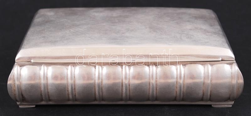 Silver tobacco box with a wooden container, 800 fineness Hungarian "Dianakopf" hallmark, 13x9x4cm, br: 191gr