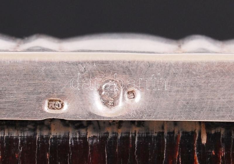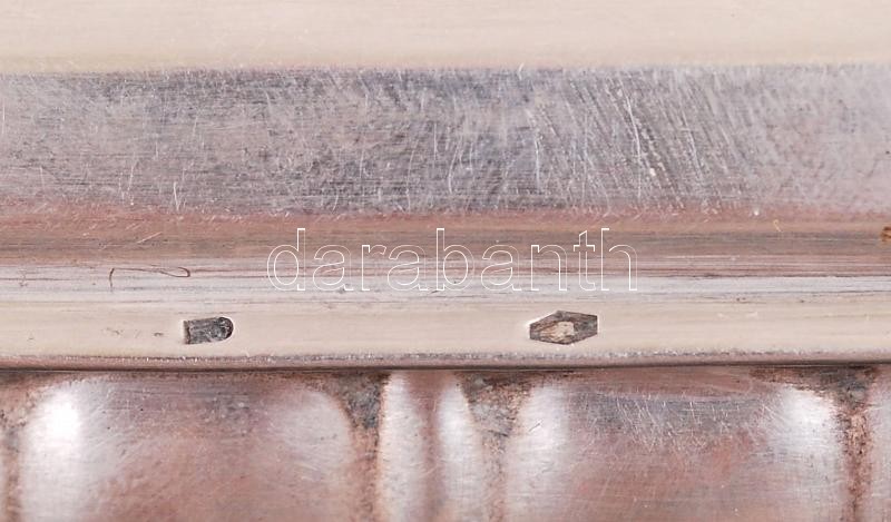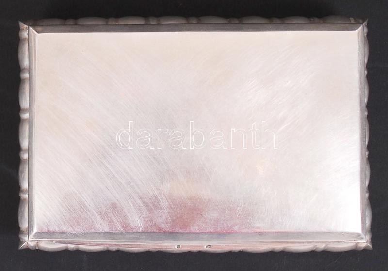 Beschreibung: 1937-1965 800-as tisztaságú, ezüst (Ag) dohányos dobozka, fa betéttel, "dianás" jelzéssel, CM mesterjeggyel /