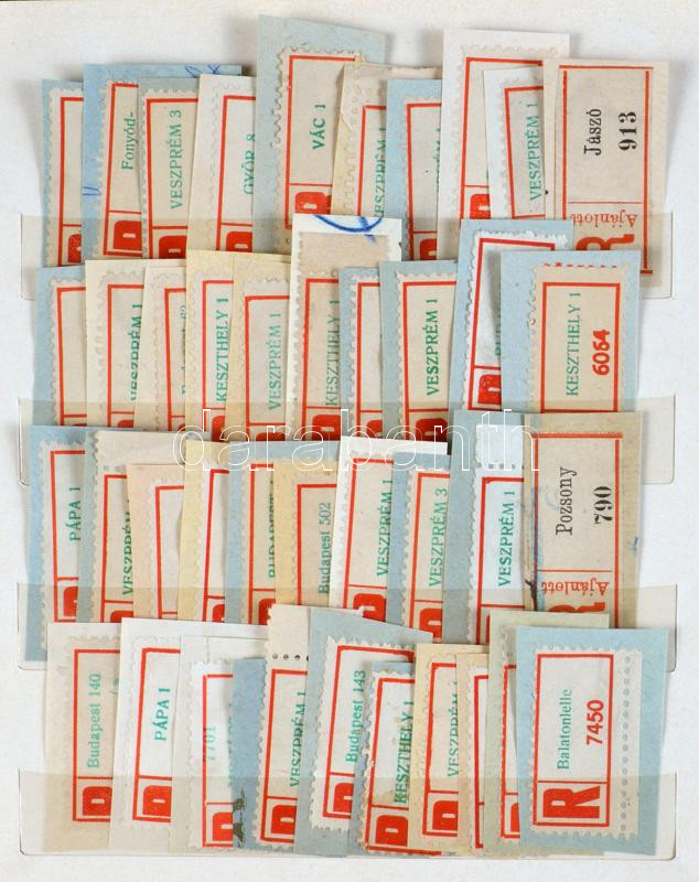 Beschreibung: 160 db piros-zöld ragjegy irányítószám nélkül, közte sok kis falvakból, piros berakóban