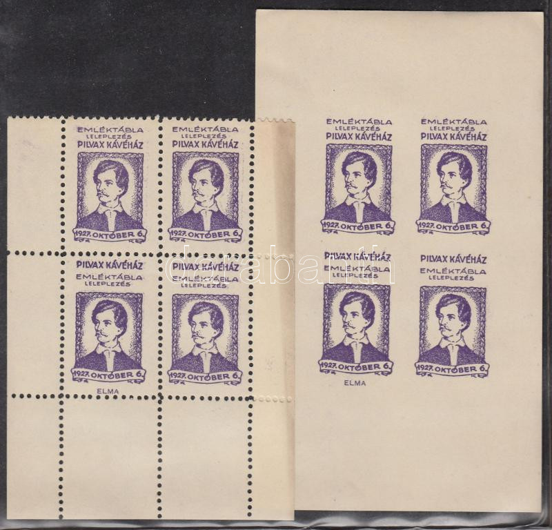1927 Pilvax kávéház emléktábla leleplezés lila színű fogazott és vágot... https://www.darabanth.com/de/197-Fernauktion/197.0/Andere-Sammelgebiete/Paraphilatelie~600014/1927-Pilvax-kavehaz-emlektabla-leleplezes-lila-szinu-fogazott-es-vagott-negyestomb~II762797