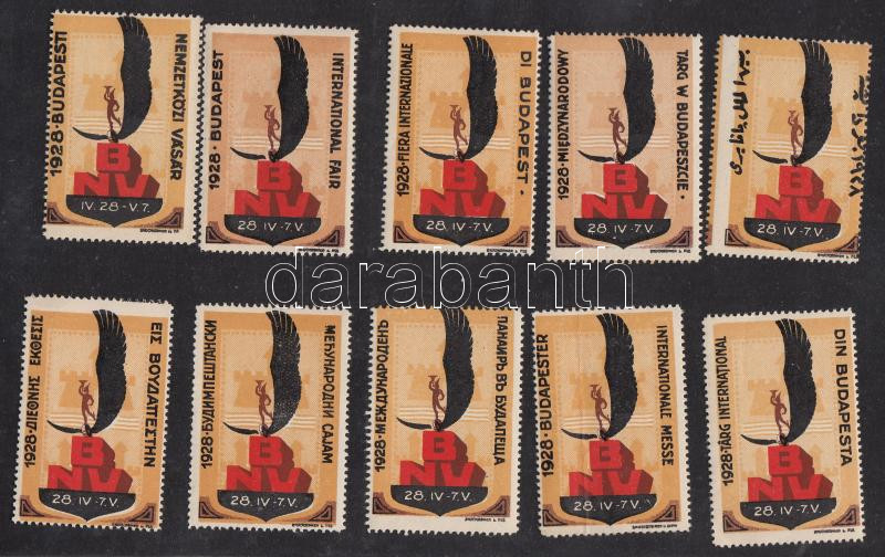 Beschreibung: 1928 Budapesti Nemzetközi Vásár 10 klf levélzáró