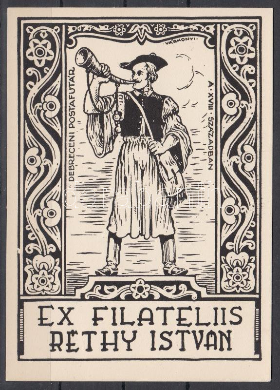 1935 "Ex Filateliis" debreceni lovasfutár fametszet https://www.darabanth.com/de/197-Fernauktion/197.0/Andere-Sammelgebiete/Paraphilatelie~600014/1935-Ex-Filateliis-debreceni-lovasfutar-fametszet~II761372