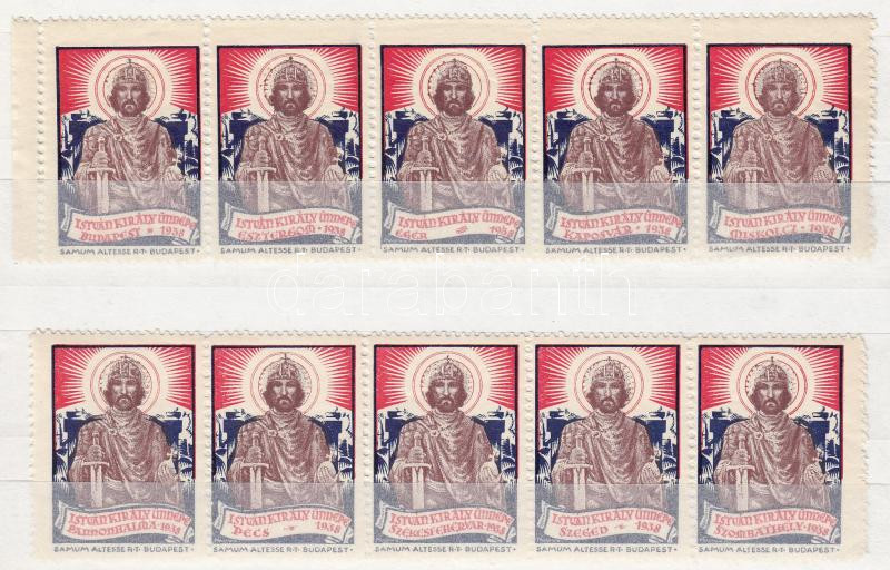 1938 Szent István Ünnepségek komplett sor 2 ötöscsíkban https://www.darabanth.com/de/197-Fernauktion/197.0/Andere-Sammelgebiete/Paraphilatelie~600014/1938-Szent-Istvan-Unnepsegek-komplett-sor-2-otoscsikban~II762997