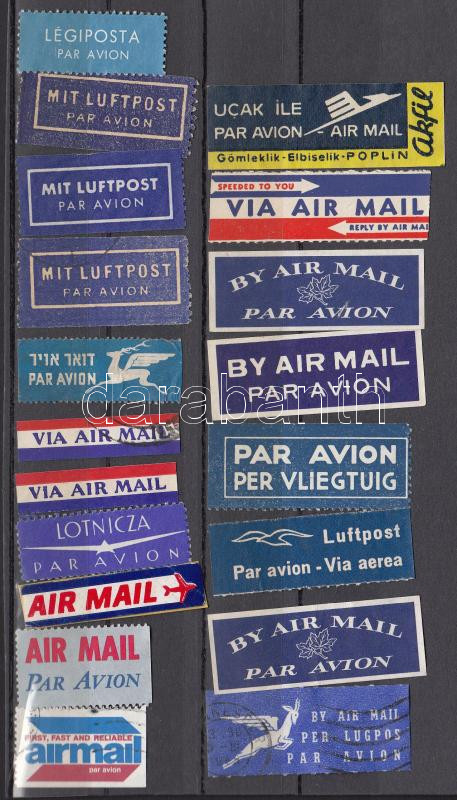 Beschreibung: 20 db vegyes repülőposta ragjegy