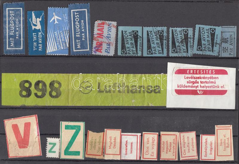 Beschreibung: 23 db vegyes postai kezelési ragjegy