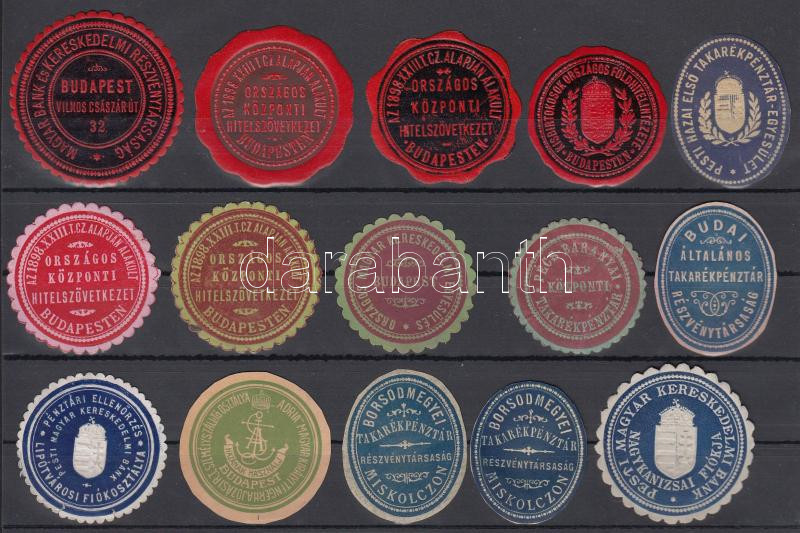 Beschreibung: Budapest Takarékpénztár Egyesület + Hitelbank + Országos Hitelkeret 16 db klf pecsétbélyeg