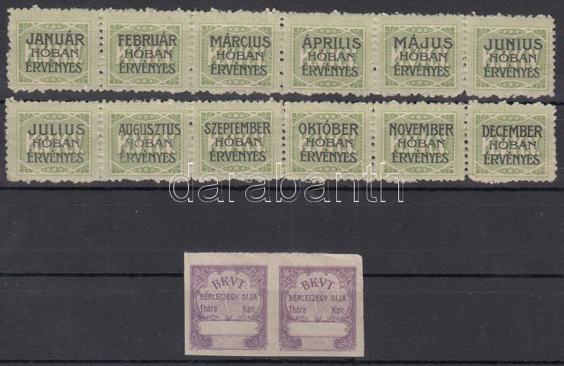 Beschreibung: Budapesti K. V. T. havi érvényesítési bélyegei 12 + 2 db