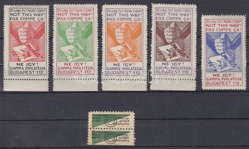 Beschreibung: Gamma filatélia: Ne így! 5 fb komlplett levélzáró sor + Bélyeggyűjtő küldemény levélzáró pár