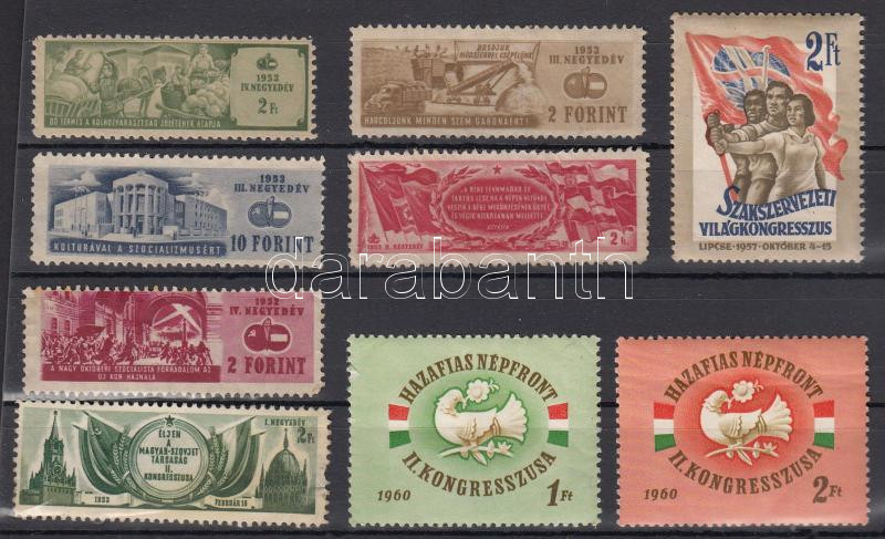 Beschreibung: Magyar- szovjet Társaság, Hazafias népfront, Szakszervezet 9 db levélzáró