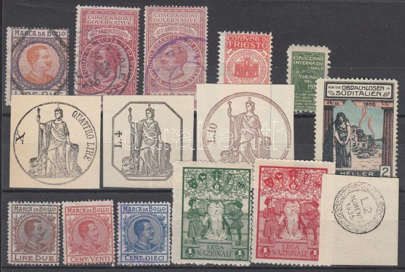 Beschreibung: Olaszország 15 db okmánybélyeg, szignetta, adománybélyeg