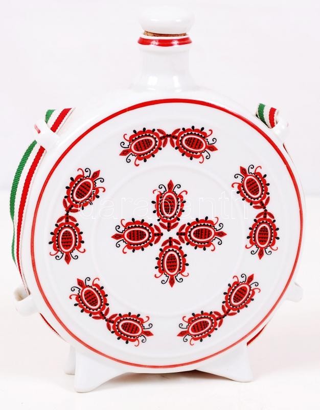 Beschreibung: Hollóházi pálinkás kulacs dugóval, matricás, jelzett, hibátlan, m:16 cm