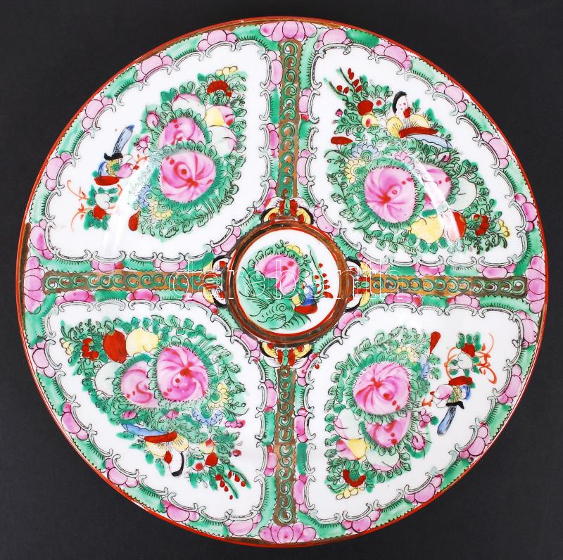 Kézzel festett, aranyozott, jelzett kínai porcelántál /