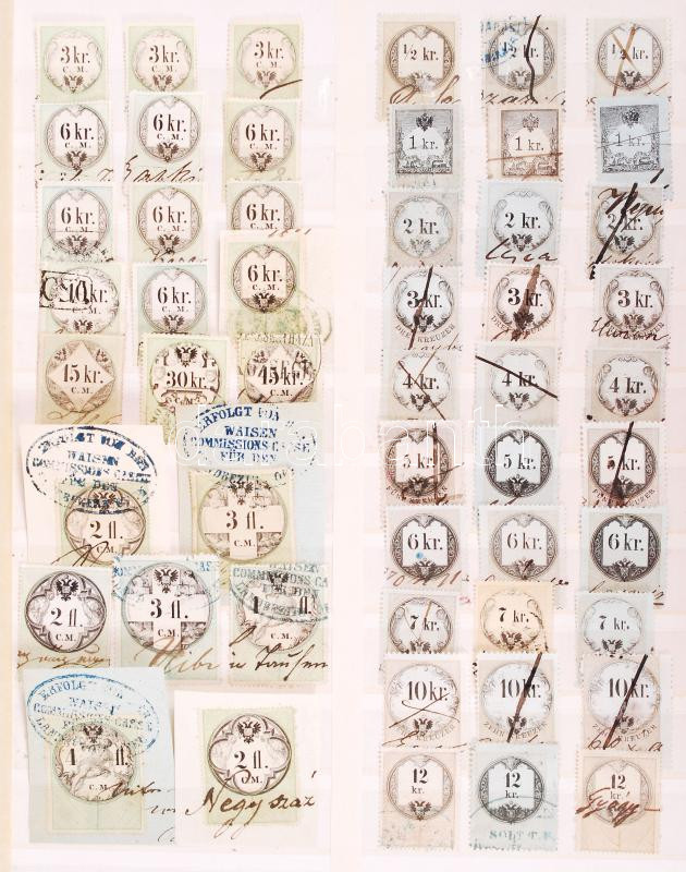 Beschreibung: 52 db okmánybélyeg az 1850-1860-as évekből