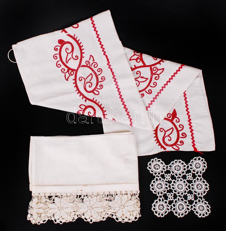 Beschreibung: Textil tétel: Hímzett falvédő, csipke terítő, csipke alátét