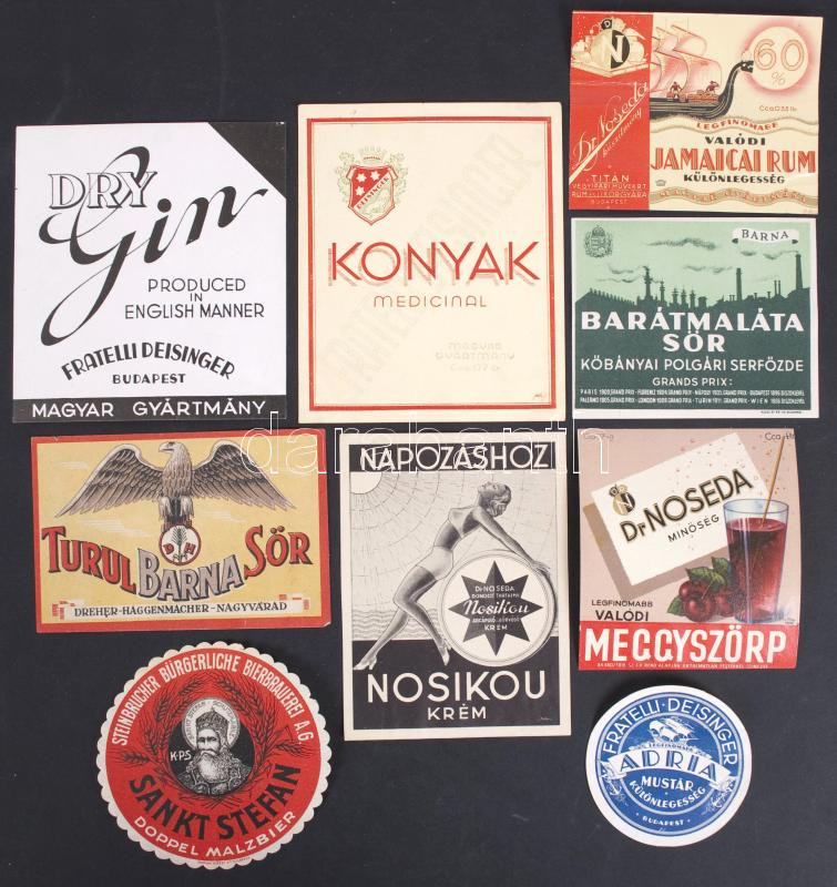 10 db, részben háború előtti sör és italcímke https://www.darabanth.com/de/197-Fernauktion/197.0/Andere-Sammelgebiete/Werbungen~600020/10-db-reszben-haboru-elotti-sor-es-italcimke~II758495