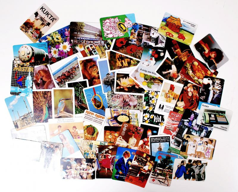 1988 55db kártyanaptár vegyes témákban (állatok, virágok, ipari, mezőgazdasági, kereskedelmi egységek). Köztük ritka kisüzemi példányok is, szép állapotban.
