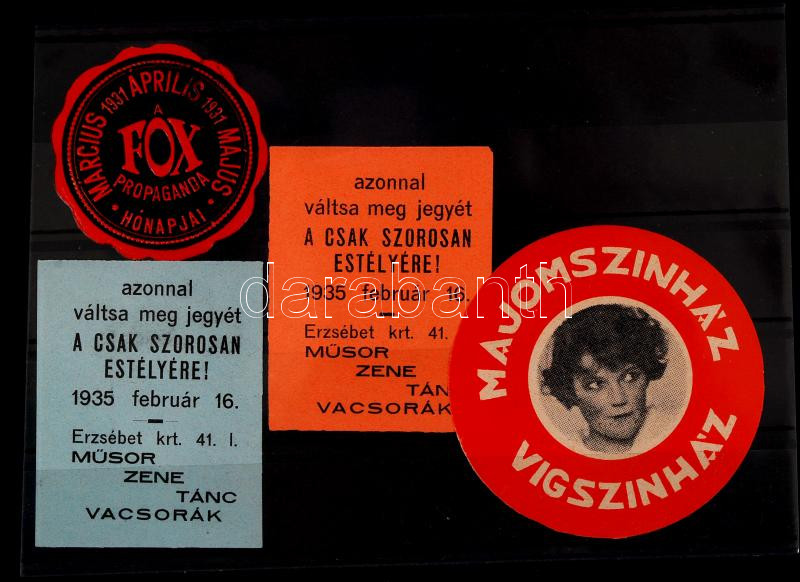 Beschreibung: Film, Színház és műsorestek 4 db reklám