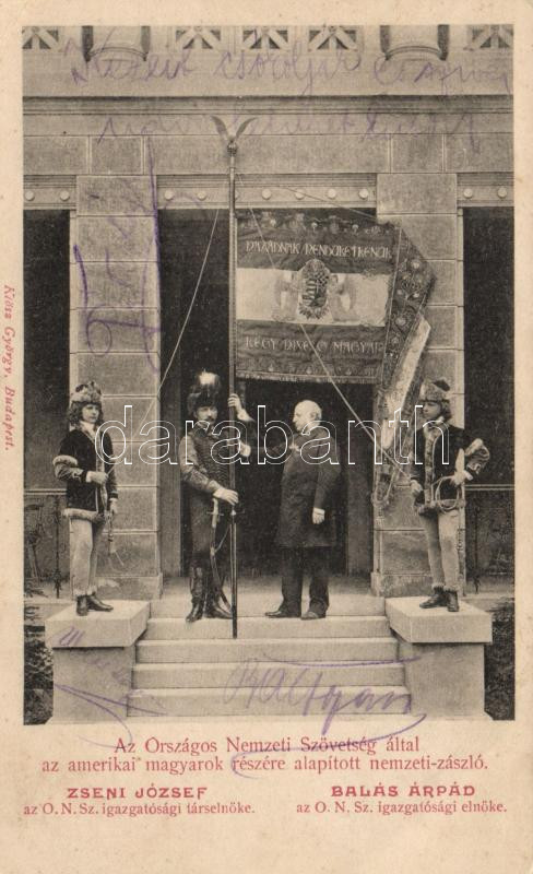 Beschreibung: Hungarian national flag / Az Országos Nemzeti Szövetség által az amerikai magyarok részére alapított nemzeti zászló, Zseni József, Balás Árpád (EK)