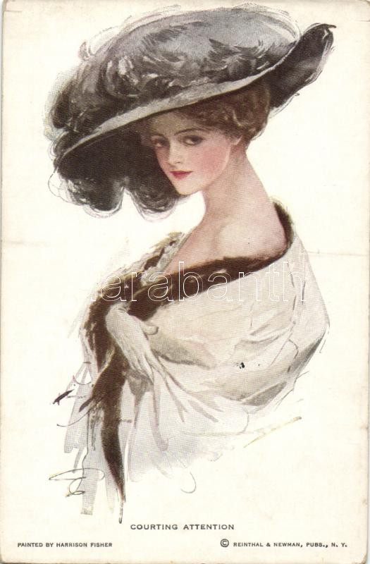Courting attention; Reinthal & Newman No. 422. s: Harrison Fisher https://www.darabanth.com/de/197-Fernauktion/197.0/Ansichtskarten/Kunstlerkarten~800402/Courting-attention-Reinthal-Newman-No-422-s-Harrison-Fisher~II764464