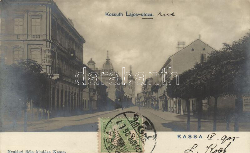 Kassa, Kossuth Lajos utca / street, Hotel Europa (small tear) https://www.darabanth.com/de/197-Fernauktion/197.0/Ansichtskarten/Slowakei~800007/Kassa-Kossuth-Lajos-utca-street-Hotel-Europa-small-tear~II760577