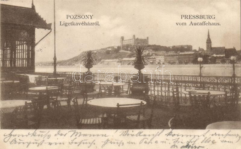 Pozsony, Liget Kávéház 'kiadja a Szolgáld ki magad, Pozsony' / Au Café https://www.darabanth.com/de/197-Fernauktion/197.0/Ansichtskarten/Slowakei~800007/Pozsony-Liget-Kavehaz-kiadja-a-Szolgald-ki-magad-Pozsony-Au-Cafe~II763788