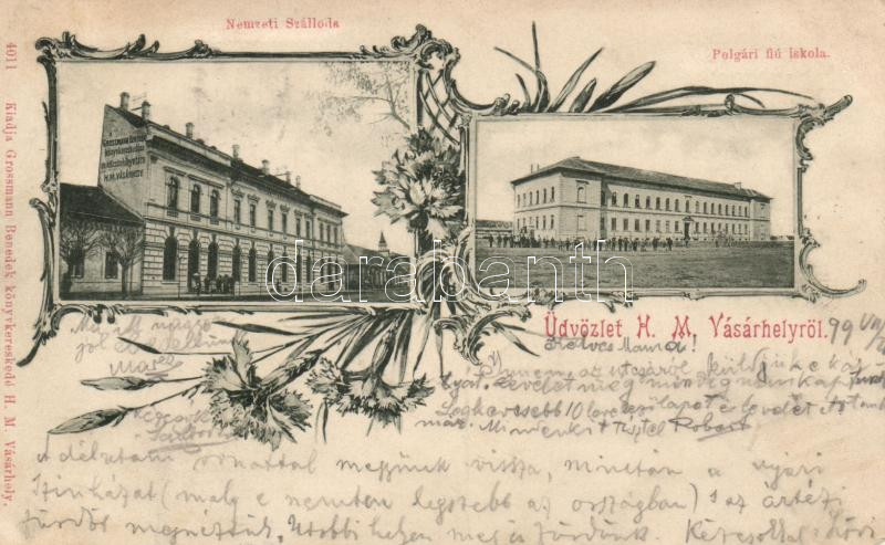 Beschreibung: 1899 Hódmezővásárhely, Nemzeti Szálloda, Polgári fiú iskola, floral (EK)