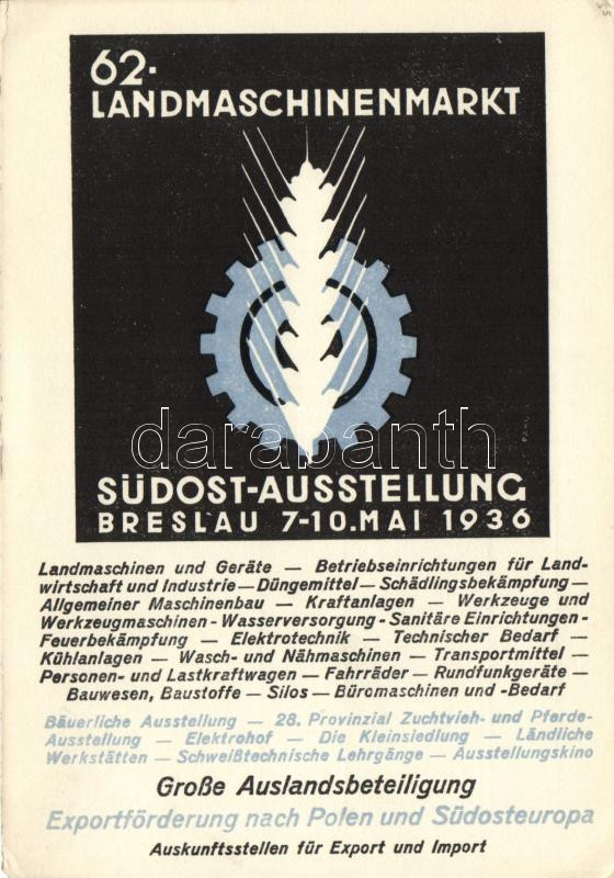 Landmaschinenmarkt, Südost Ausstellung Breslau 1936 / Agricultural mac... https://www.darabanth.com/de/197-Fernauktion/197.0/Ansichtskarten/Werbungen~800410/Landmaschinenmarkt-Sudost-Ausstellung-Breslau-1936-Agricultural-machinery-market-Southeast-Expo~II759674