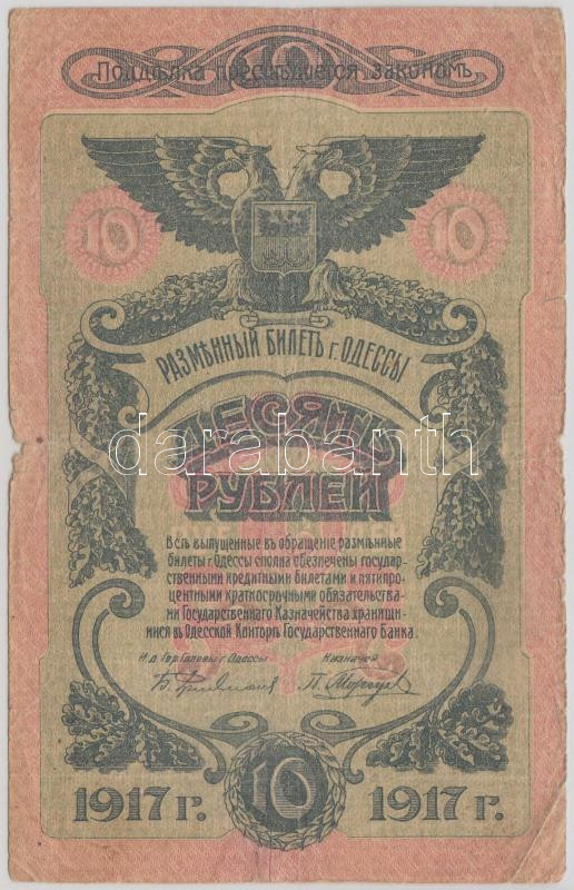 Beschreibung: Oroszország / Ukrajna és Krím / Odessza 1917. 10R T:III-