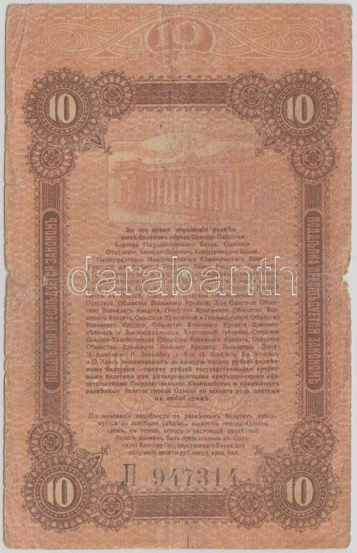 Russia / Ukraine and Crimea / Odessa 1917. 10 Rubles C:VG