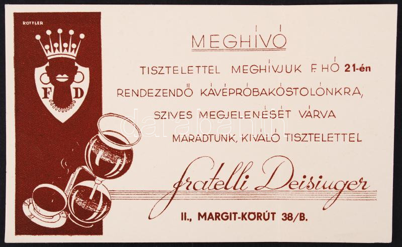 Meghívó a Fratelli Deisinger Kávé, Tea szaküzlet kávé próbakóstolójára... https://www.darabanth.com/de/198-Fernauktion/198.0/Andere-Sammelgebiete/Drucksachen~200008/Meghivo-a-Fratelli-Deisinger-Kave-Tea-szakuzlet-kave-probakostolojara~II769146