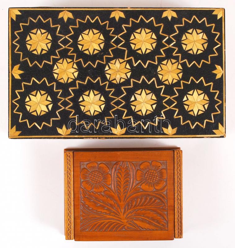 2 db díszített fa doboz, jó állapotban, 11×8 cm, 20×12 cm https://www.darabanth.com/de/198-Fernauktion/198.0/Andere-Sammelgebiete/Flohmarkt~200023/2-db-diszitett-fa-doboz-jo-allapotban-11C3978-cm-20C39712-cm~II766154
